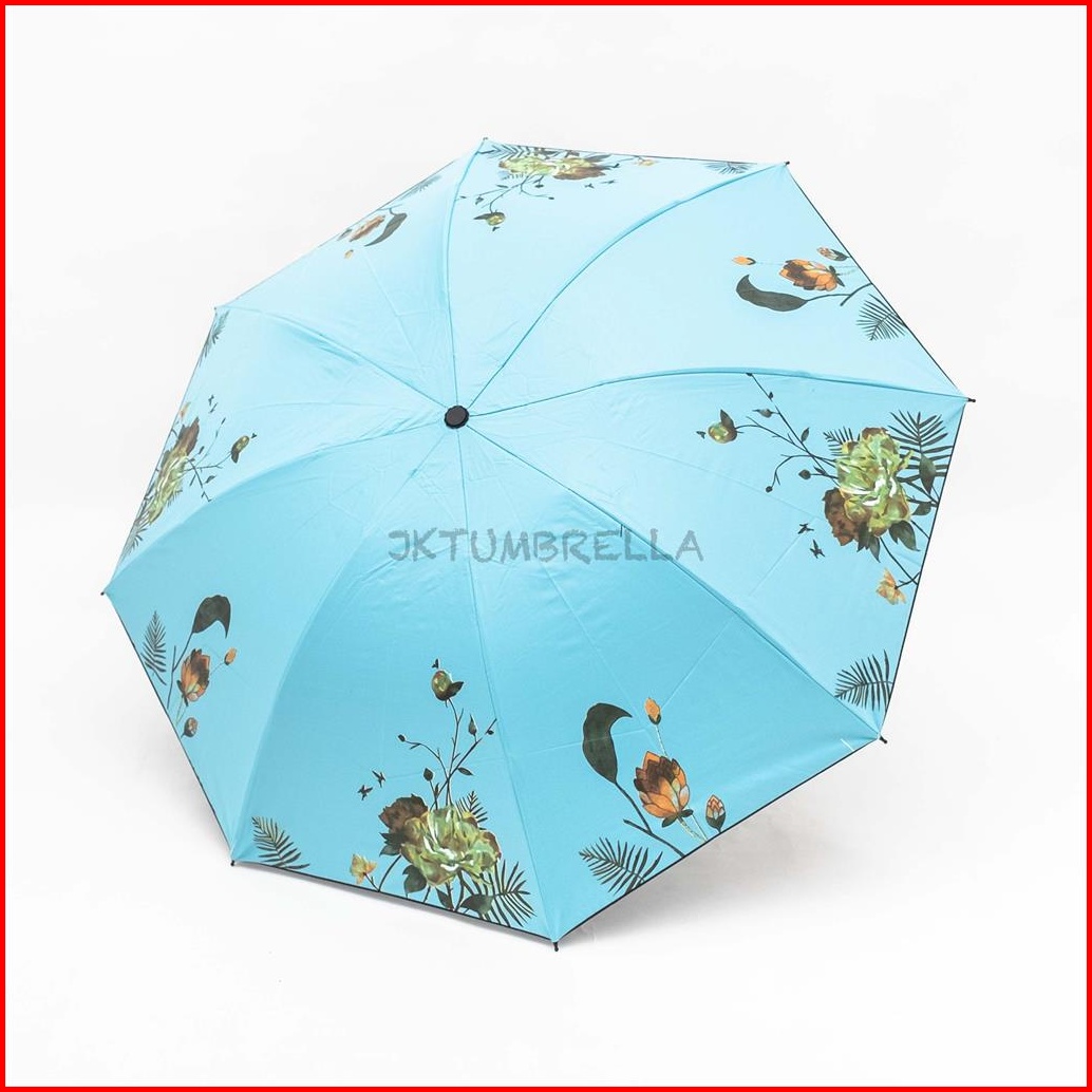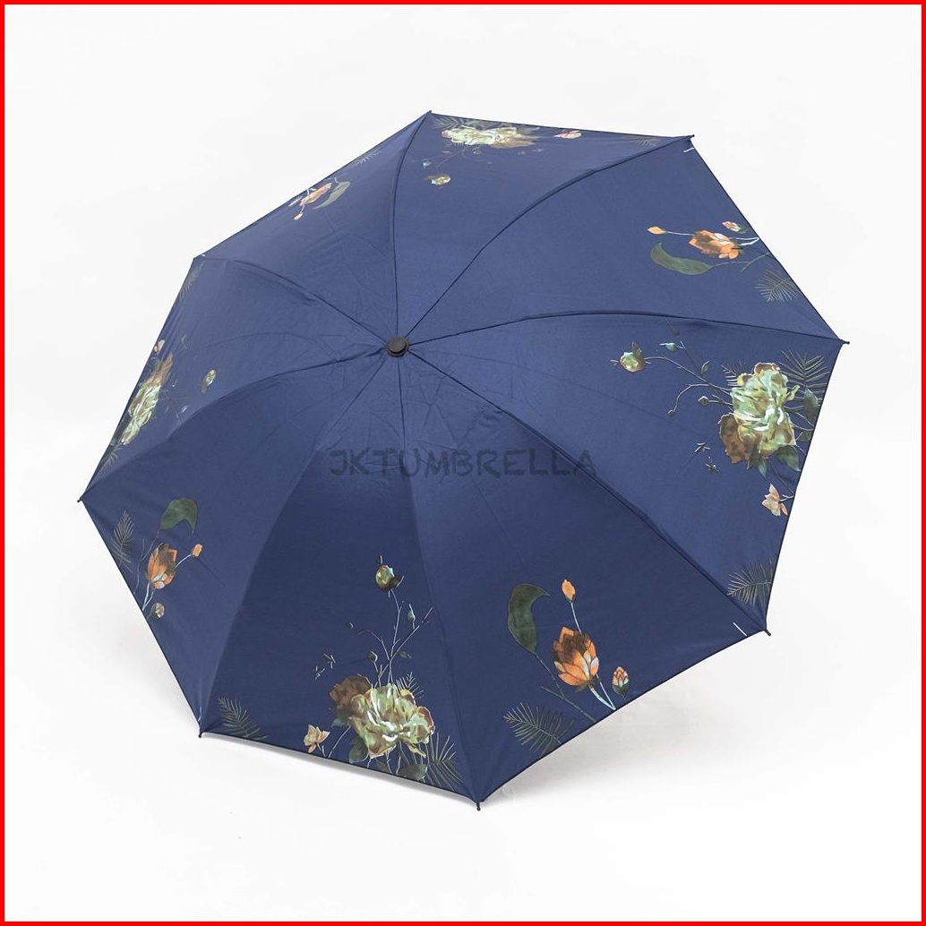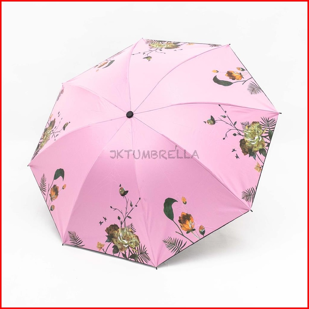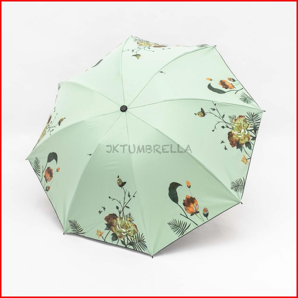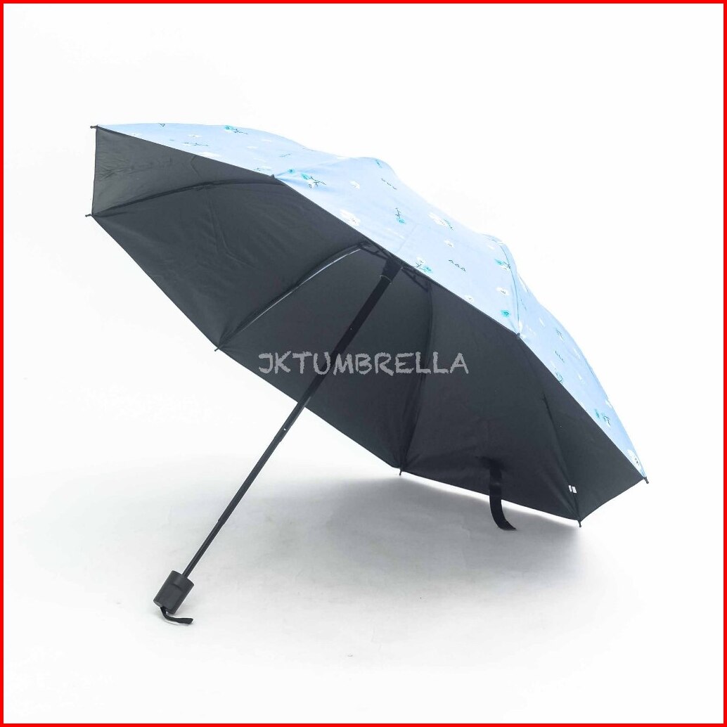 Payung Lipat 3 Bunga Rumput Payung Lapis Hitam Payung Anti Uv Payung Grc - Kode 6222 5046