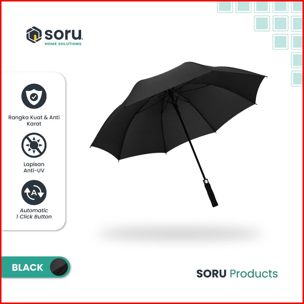 Soru - Payung Golf Besar Jumbo Otomatis Premium Fiberglass - Golf Umbrella Automatic Handle Hitam