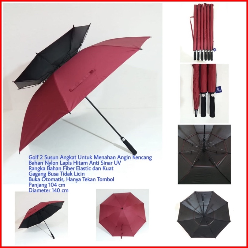 Payung Golf Susun Angkat Besar Jumbo Lapis Hitam Anti Uv Lasika