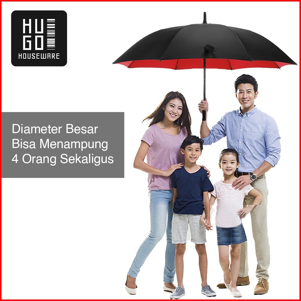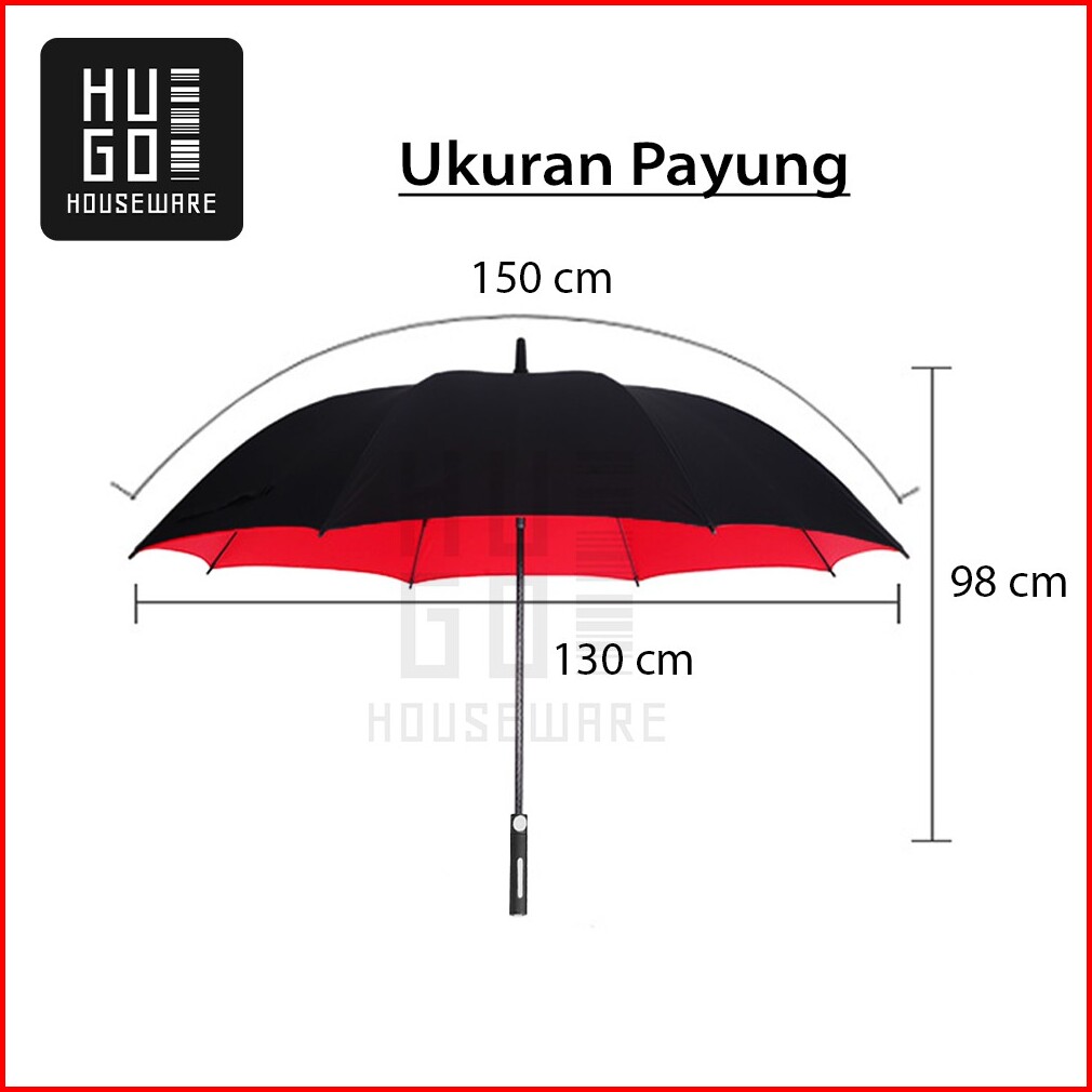 Payung Besar Golf Jumbo Mewah Polos Rangka Fiber Otomatis Hugo