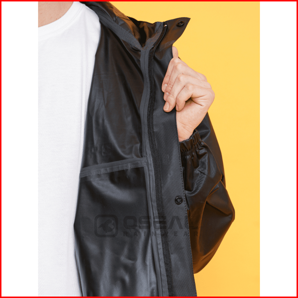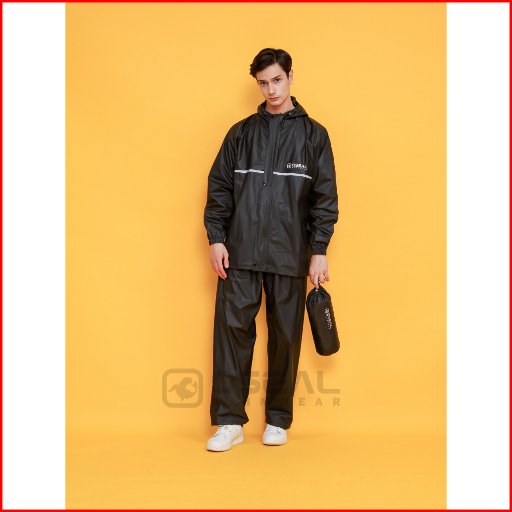 Jas Hujan Oseal Full Seal Raincoat Mantel Pria Wanita Dewasa Shine Series Hitam