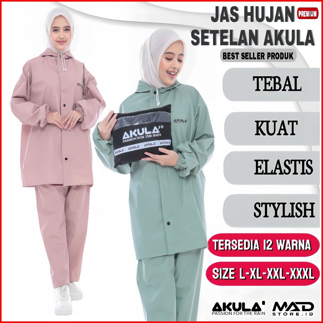 Jas Hujan Akula Setelan Pria Wanita Dewasa Anti Rembes Raincoat Bahan Pvc Tebal Original