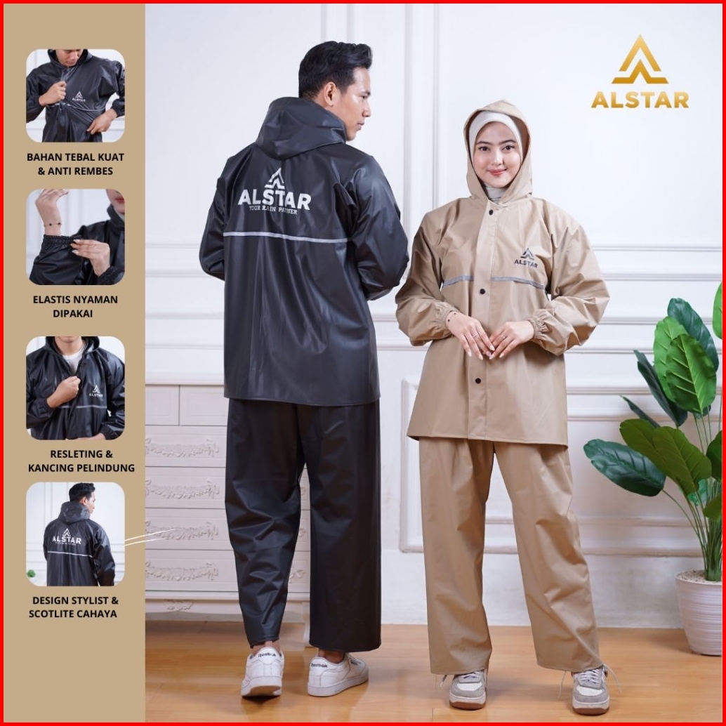 Jas Hujan Raincoat Mantol Pria Wanita Terbaik Bahan Pvc Tebal Anti Rembes By Alstar