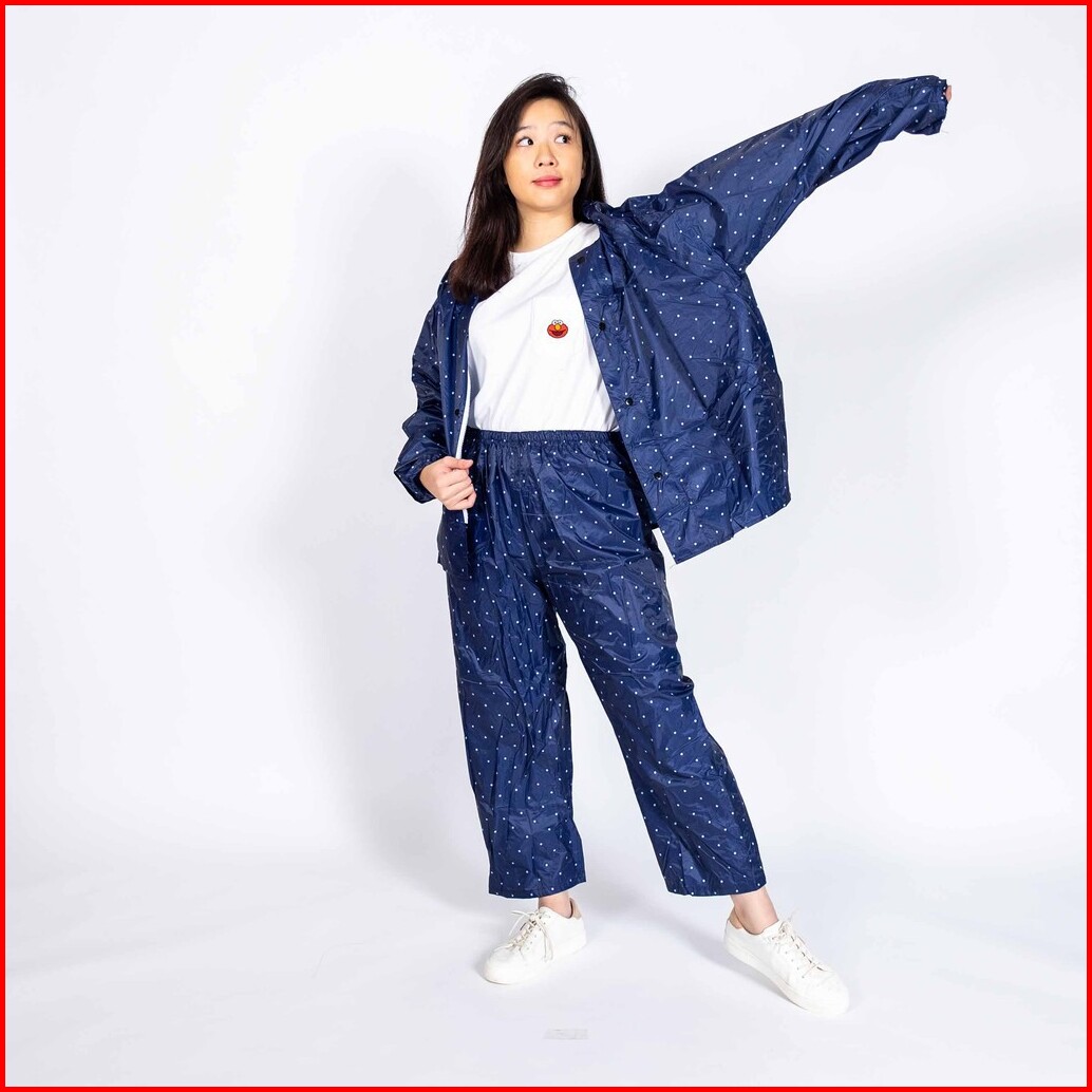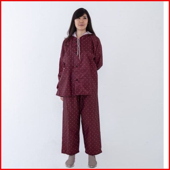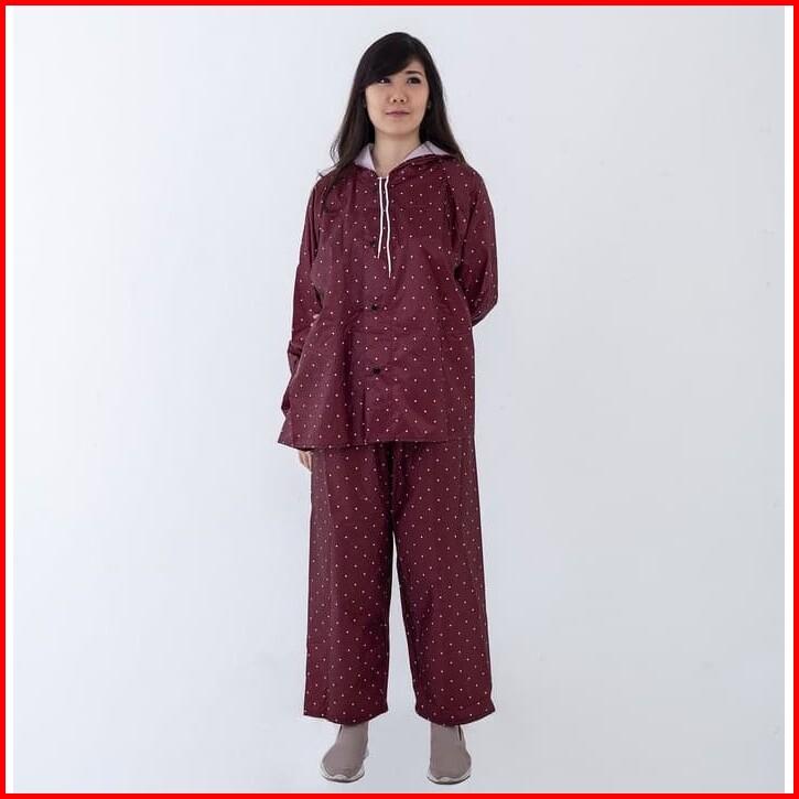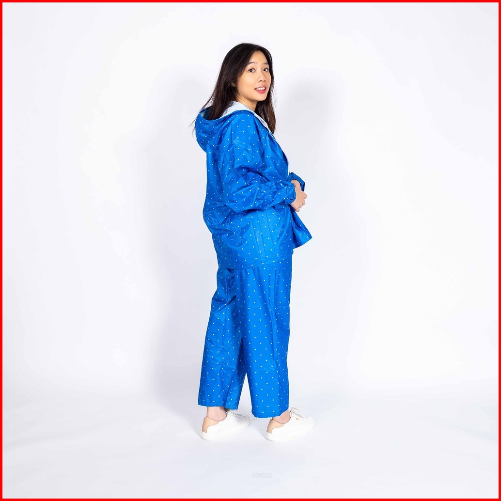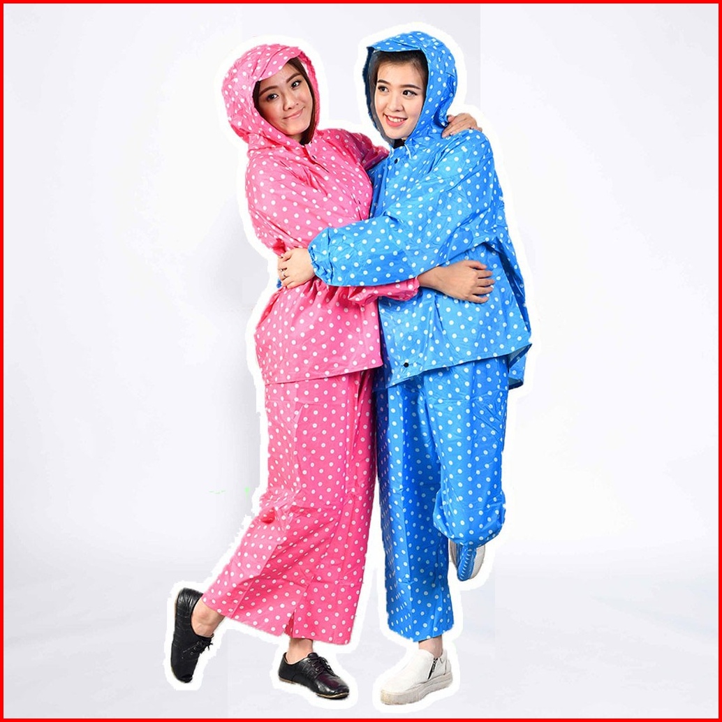 Jas Hujan Wanita Setelan Jaket Dan Celana Polkadot Raincoat Mantel Hujan