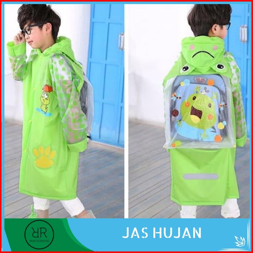 Jas Hujan Anak Motif Green Keropi Dengan Ruang Ransel