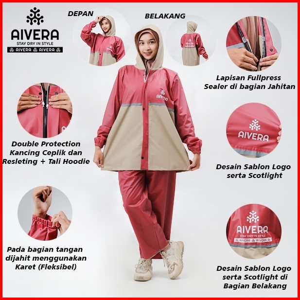 Aivera Raincoat - Jas Hujan Mantel Pria Wanita Bahan Tebal Sealpress Anti Rembes