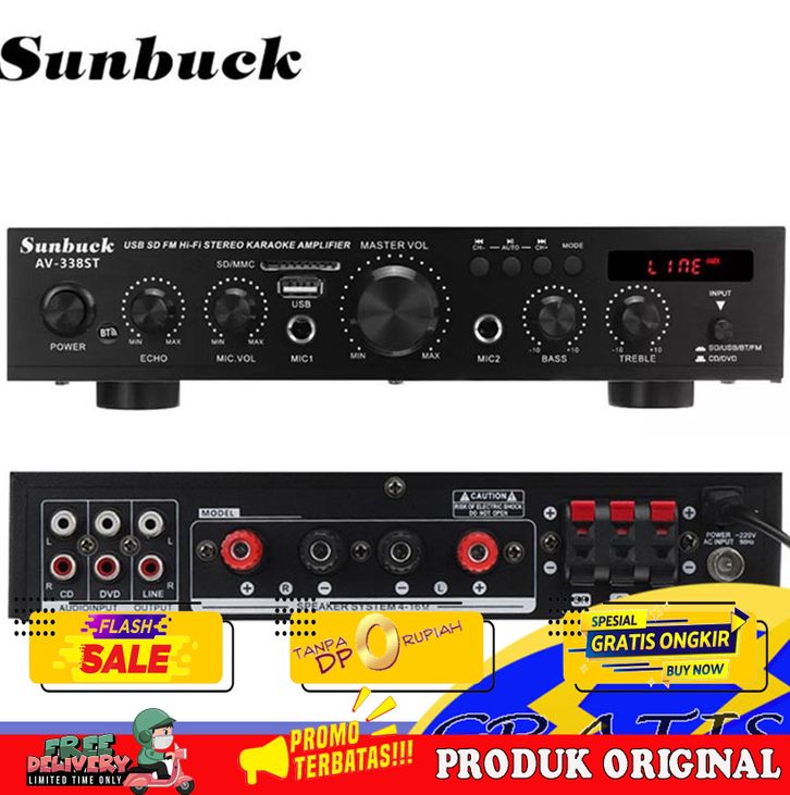 Audio Amplifier Bluetooth EQ Karaoke Home Theater FM 2000W - 5 Channel - Sunbuck AV-338ST