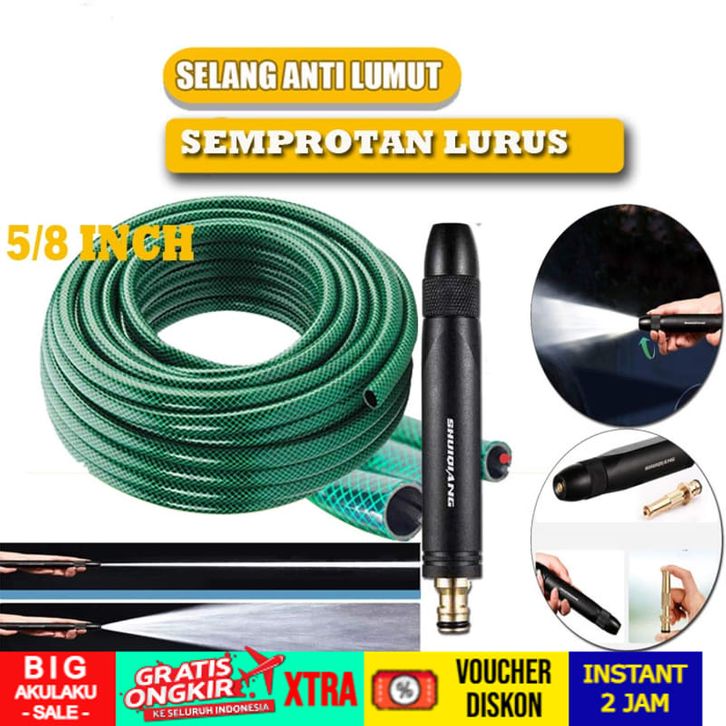 Paket Selang 5/8 Set Alat Cuci Motor Selang Air Serat Benang Hijau Semprotan Air Kuningan - Selang Semprotan Air
