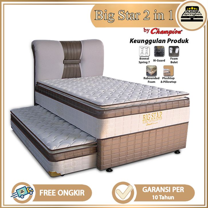 Springbed Kasur Sorong 2 in 1 Plushtop + Pillowtop - Champion Springbed Big Star 2 in 1 Sand. Marion