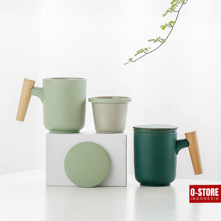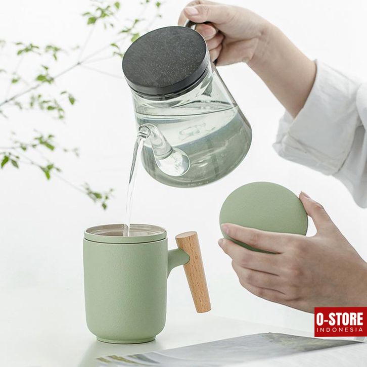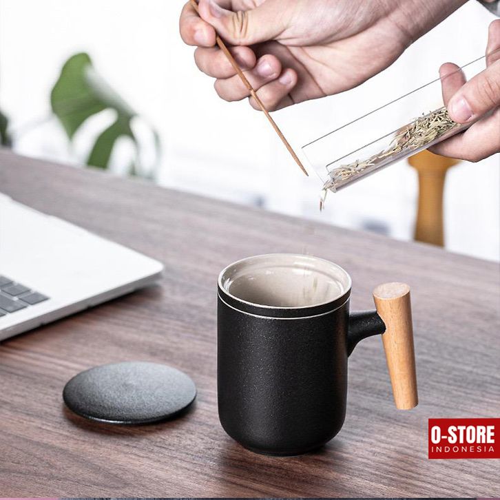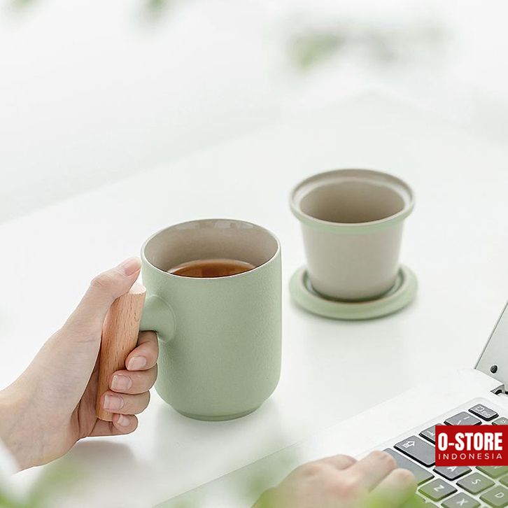 Gelas Keramik Set Tutup Mug - Souvenir Coffe Cup, Cangkir Teh Aesthetic dengan Strainer Dune