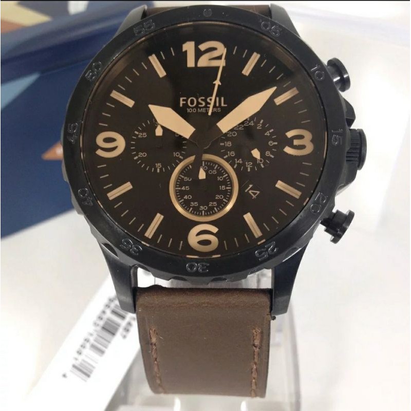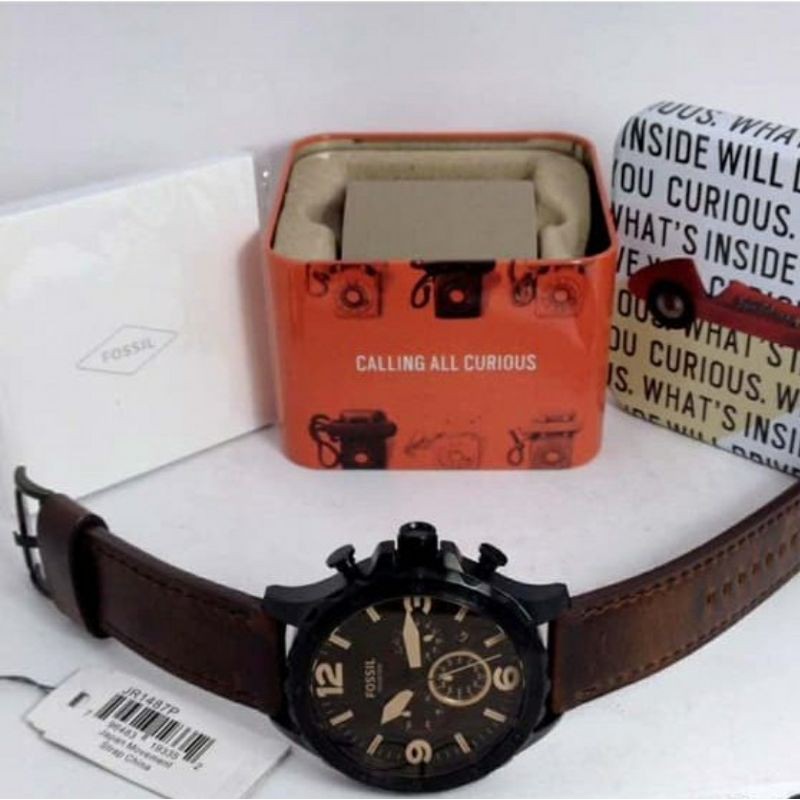 JAM TANGAN FOSIL PRIA NATE JR1487 BROWN LEATHER STRAP