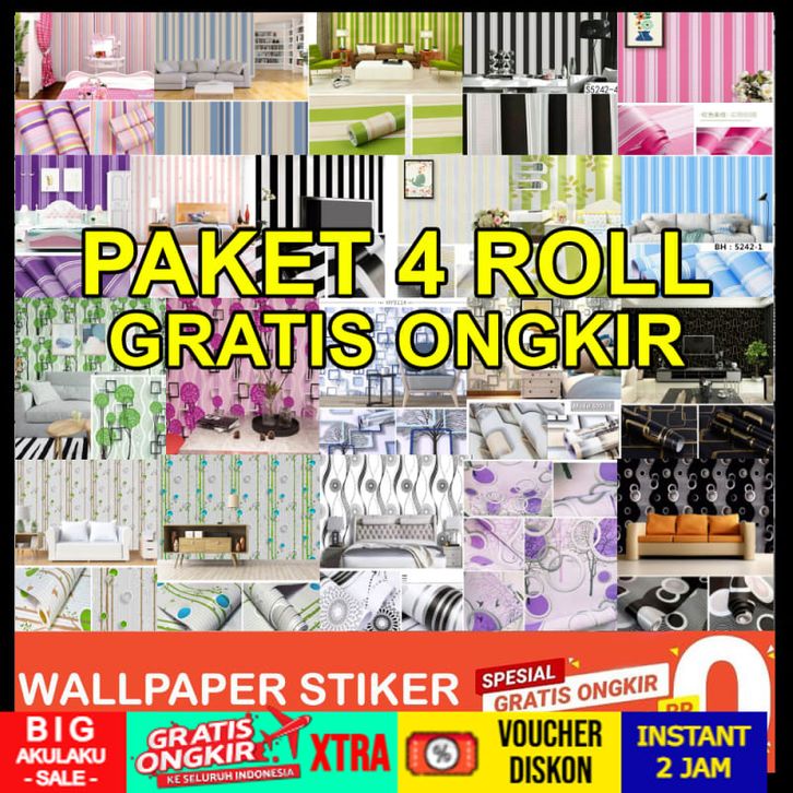 Promo Termurah ! Paket 4 Roll Wallpaper Stiker Dinding | Walpaper Dinding Motif Salur KUALITAS PREMIUM