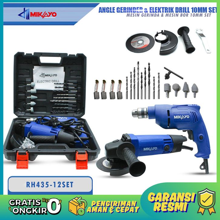 PROMO 2 ITEM MIKAYO BOX KOPER SET ISI MESIN BOR TANGAN LISTRIK 350W SET DAN GERINDA POTONG/POLES RH 435-12