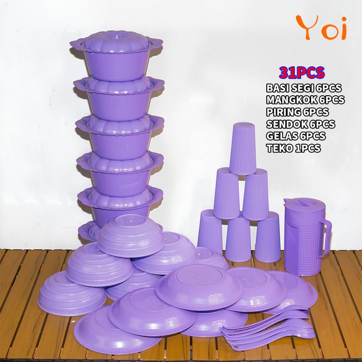 Yoi - Piring Plastik Set 31pcs / Prasmanan Set / Piring Dapur / Perabotan Dapur Lengkap Mangkok Palastik TERLARIS