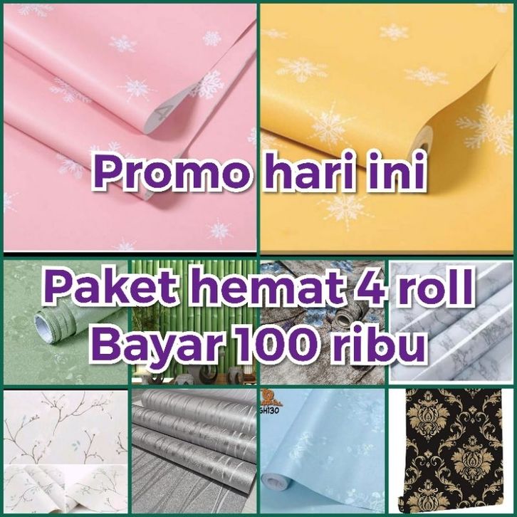PROMO PAKET HEMAT 4 ROLL Wallpaper Dinding Kamar Tidur Motif Bunga Polos Batik Karakter Batik Sticker 3D Polos mewah