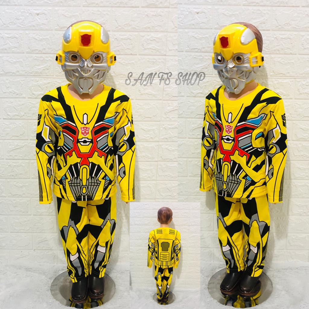 SAN FS SHOP-BAJU SETELAN PANJANG KOSTUM ANAK LAKI-LAKI MOTIF BUMBLE BEE+TOPENG