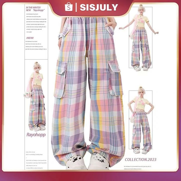 Celana Kerja Wanita / Celana Kaki Lurus Kotak-kotak Warna Amerika Y2K / Celana Kaki Lebar B pre order 30 hari