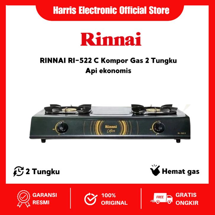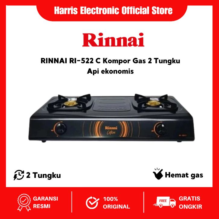 KOMPOR GAS RINNAI 2 TUNGKU RI-522C GARANSI RESMI