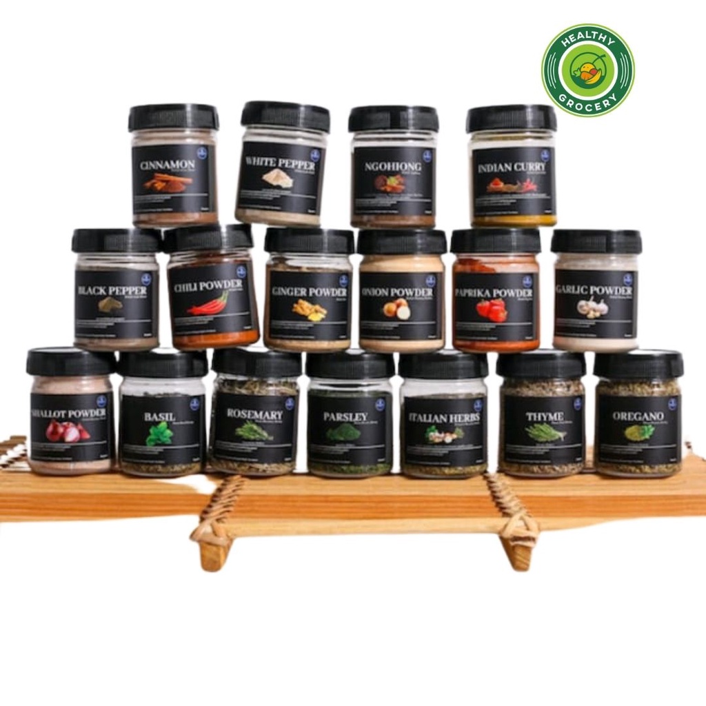 GARLICKYS BLACK PEP, GARLICKYS SHALLOT, GARLICKYS GARLIC POW, GARLICKYS CHILI POWD, GARLICKYS ONION POWD, GARLICKYS OREGANO, GARLICKYS PARSLEY, GARLICKYS INDIAN CUR, GARLICKYS THYME, GARLICKYS ITALIAN