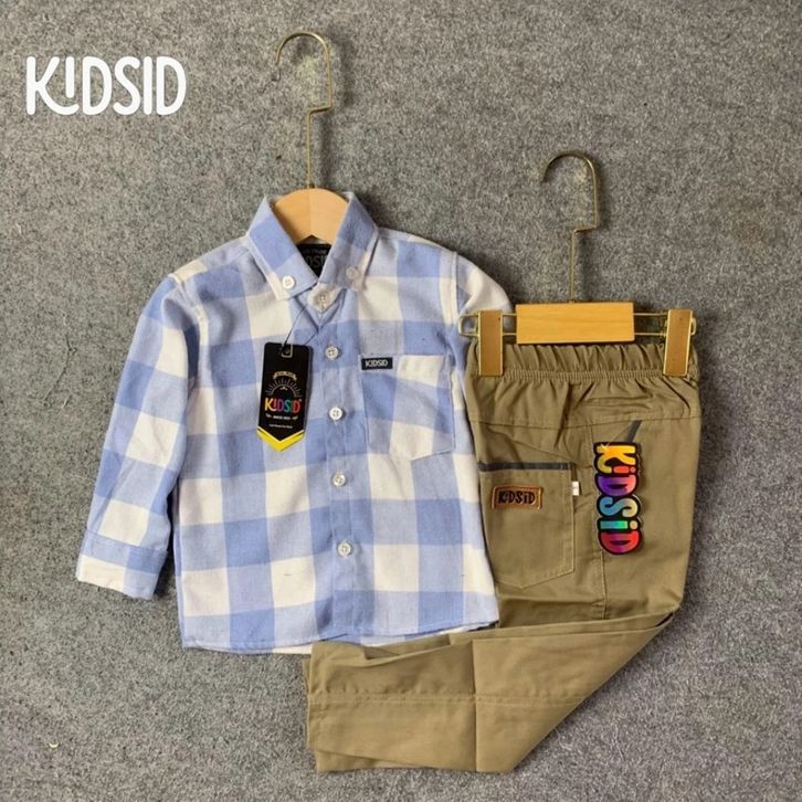 Setelan Kemeja Flanel Dengan Celana Chinos Panjang Pakaian Anak Laki Laki Import Setelan Anak Laki Laki 1-14 Tahun