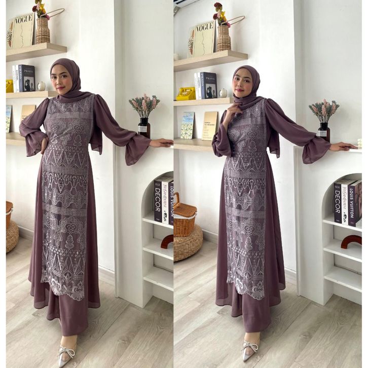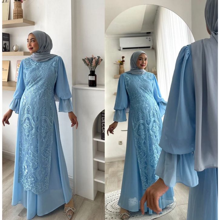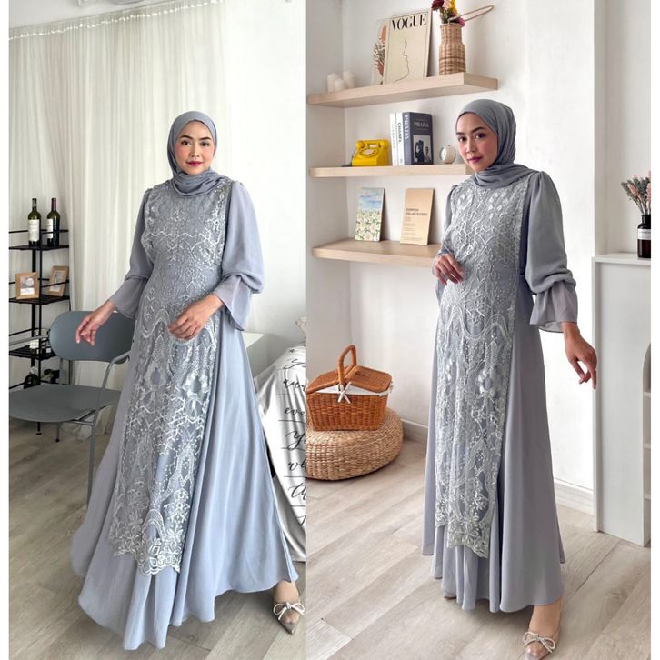 Gamis Brukat Long Dress Ceruty Baju Wisuda Lamaran Kondangan Gaun Seragam Bridesmaid Keluarga Desain Kekinian anggun