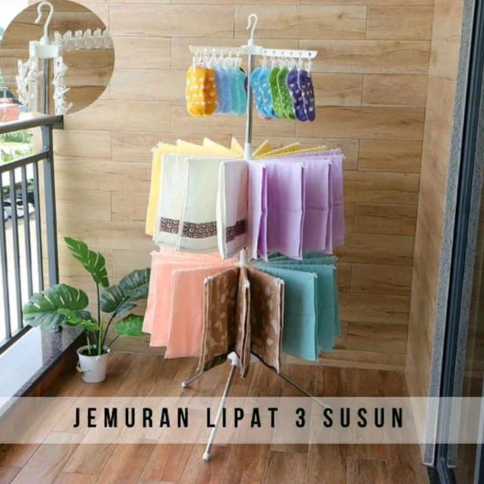 PROMO Jemuran Gantungan Baju Bayi 3 Susun Jepitan Baju Pakaian Bayi Baby Anak Jemuran Portable Menara Lipat Stainless