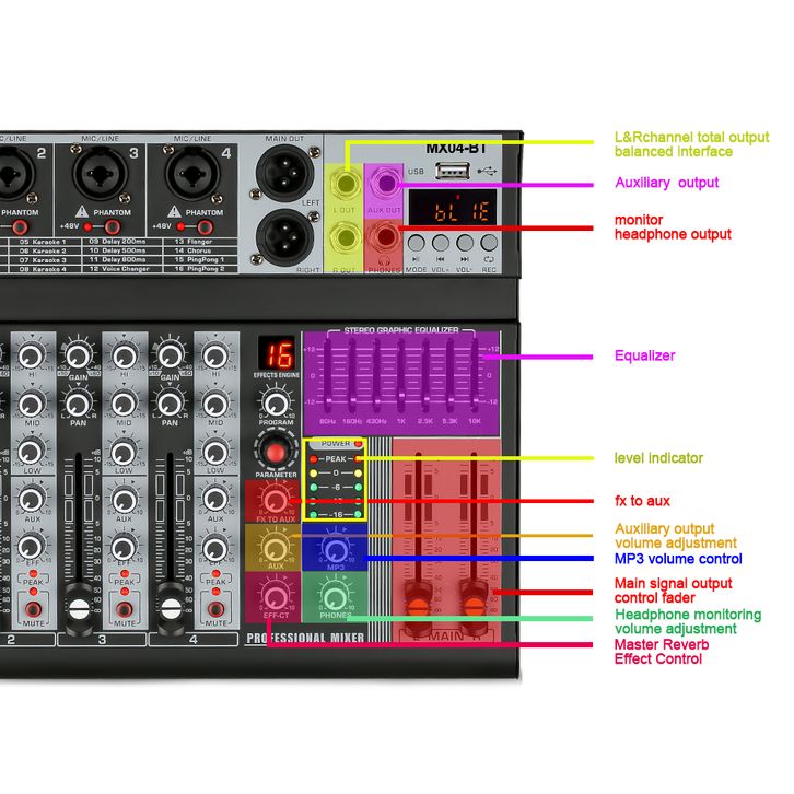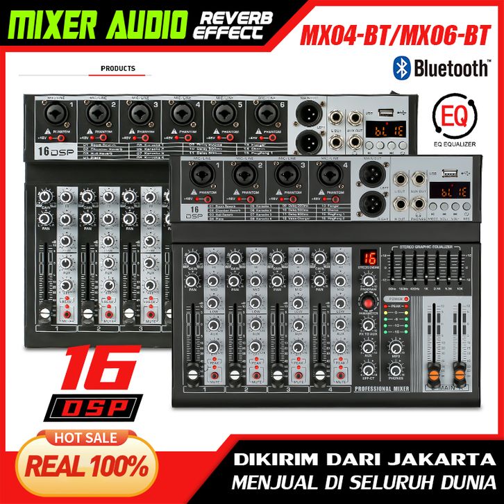 MIXER AUDIO EFEK DIGITAL PROFESIONAL 6/4-CHANNEL MX06BT/ MX04BT EQEFEK 16DSP SINYAL USB BLUETOOTH/MP3AMPLIFIER KTV