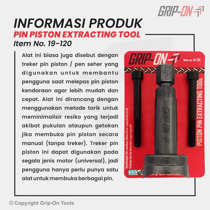 Grip-On Piston Pin Exctracting Tool Alat Cabut Lepas Buka Pin Piston Treker Pin Piston 19-120