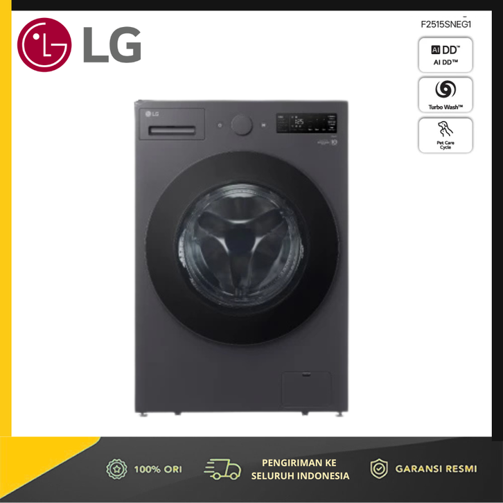 MESIN CUCI FRONT LOADING LG 15KG AI DD TURBO WASH PET CARE CYCLE F2515SNEG1 1 TABUNG OTOMATIS BUKAAN DEPAN GARANSI MURAH