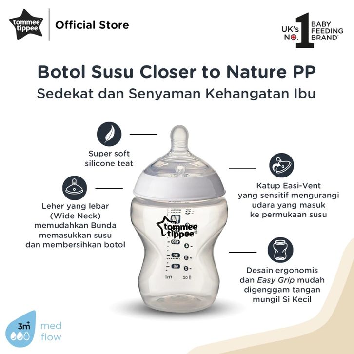 TommeeTippee Botol PP Close to Nature Clear 260ML/9oz- Botol Susu Bayi - 2 Pack