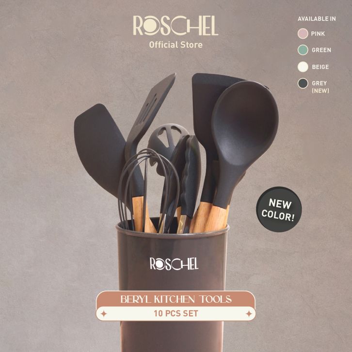 Roschel Beryl 10 Pcs Set Kitchen Tools Alat Masak Spatula Set Sutil Sodet Silicone ISI 10 PCS TAHAN PANAS RTS-110