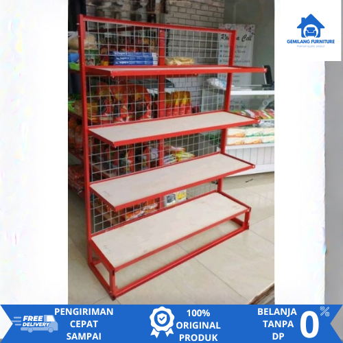 RAK MINIMARKET 4 SUSUN RAK GONDOLA SINGLE RAK PENYIMPAN MAKANAN RAK DISPLAY TOKO