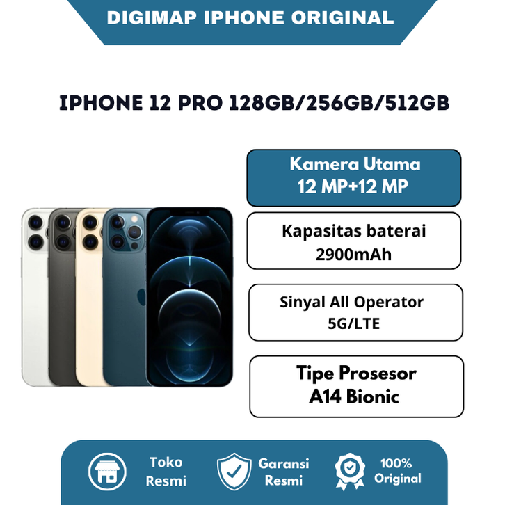 Iphone 12 Pro 128gb/256gb/512gb Bekas Original 100% | Normal Mulus Fullset Cicilan Murah Tanpa Dp