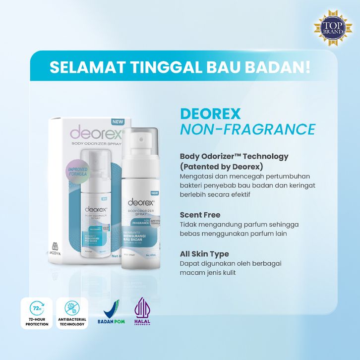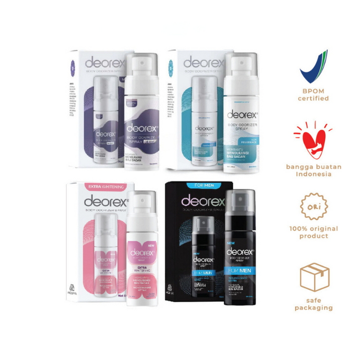 DEOREX BODY ODORIZER SPRAY NON FRAGRANCE // MUSK FRAGRANCE // FOR MEN // EXTRA WHITENING (60ML)