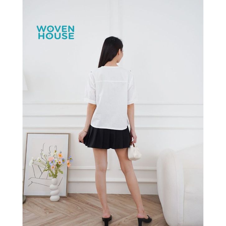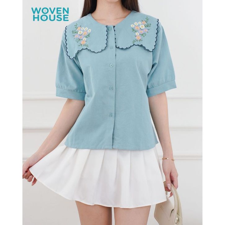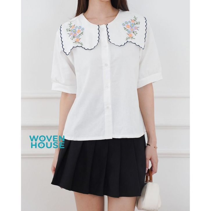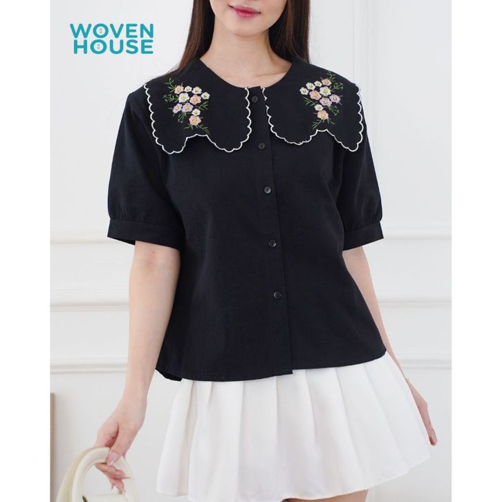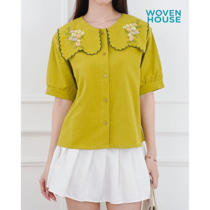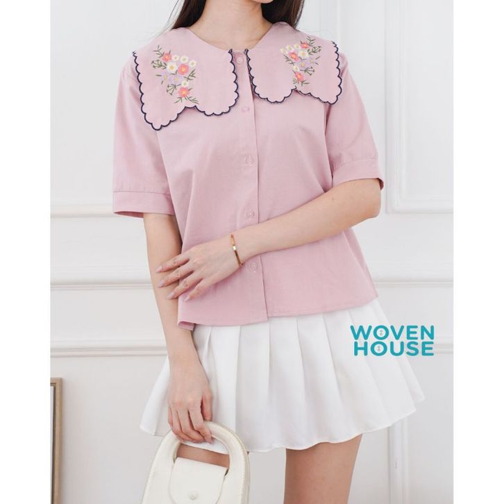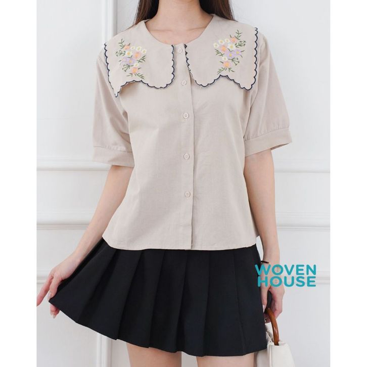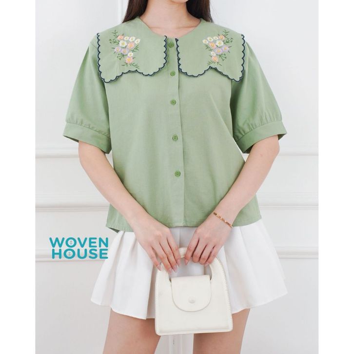 Osienaya Top Blouse Linen Flower - Atasan Kemeja Katun Bordir Bunga Lengan Pendek