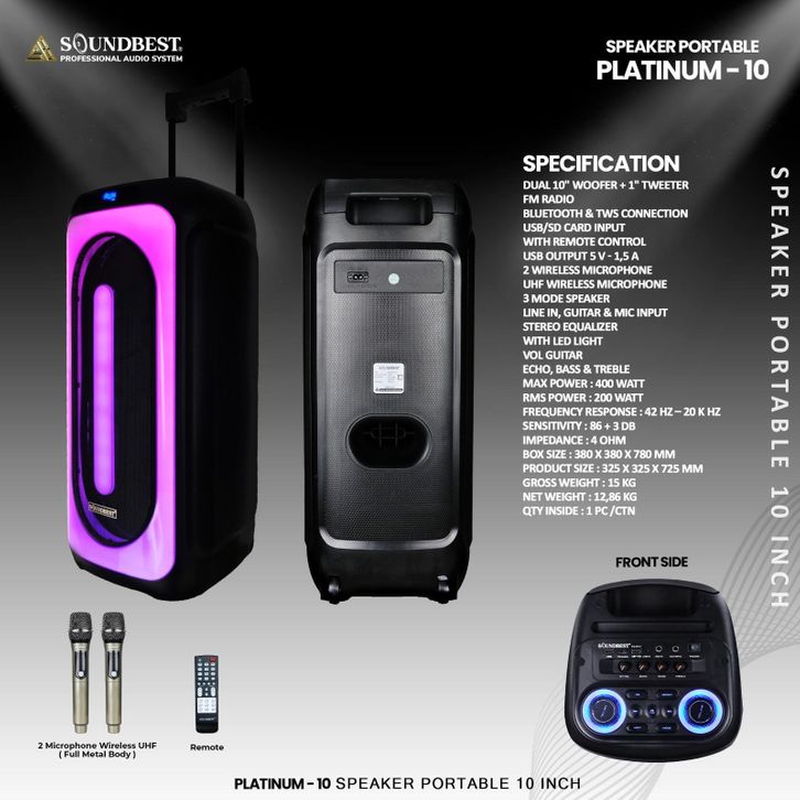 Speaker Portable Soundbest Platinum 10 Double 10 Inch Bluetooth 2 Mic Wireless