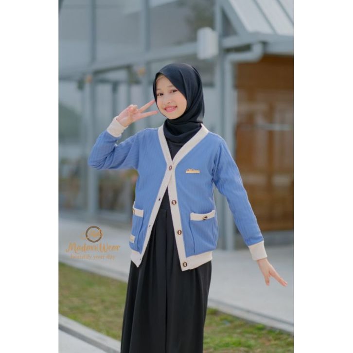 Kardigan Anak Cewek Cardigan Outer Wear Luaran Fashion Anak Muslimah Korean Style Kekinian Full Kancing Depan Halus