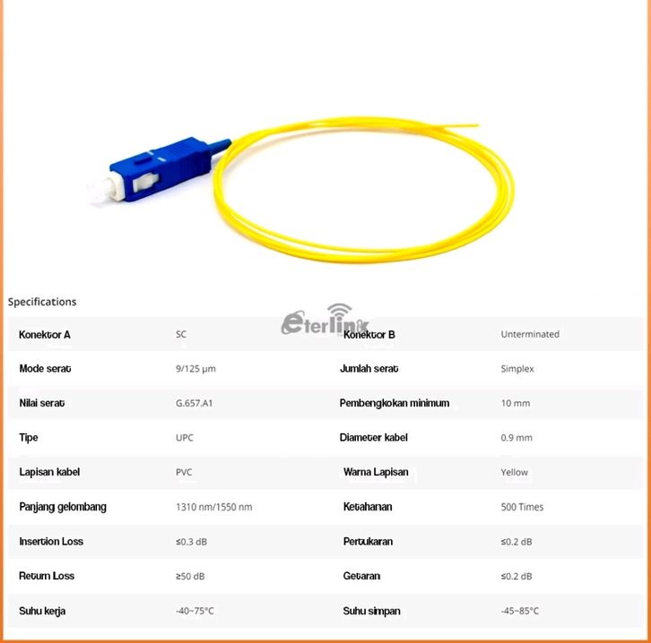 Fiber Pigtail SC/UPC 0.9mm SM 1 Meter Kabel Fo Pigtail 1.5M SC UPC