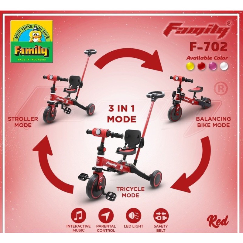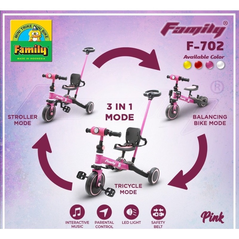 [PROMO] SEPEDA RODA TIGA ANAK EXOTIC BALANCING BIKE ET709-7 FAMILY F-702 6IN1 DORONG SETIR