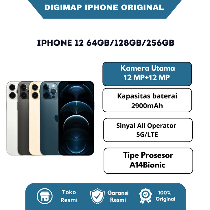 Iphone 12 64gb/128gb/256gb Normal Mulus Bh 85% Fullset 100% Original Second inter Fullset Box