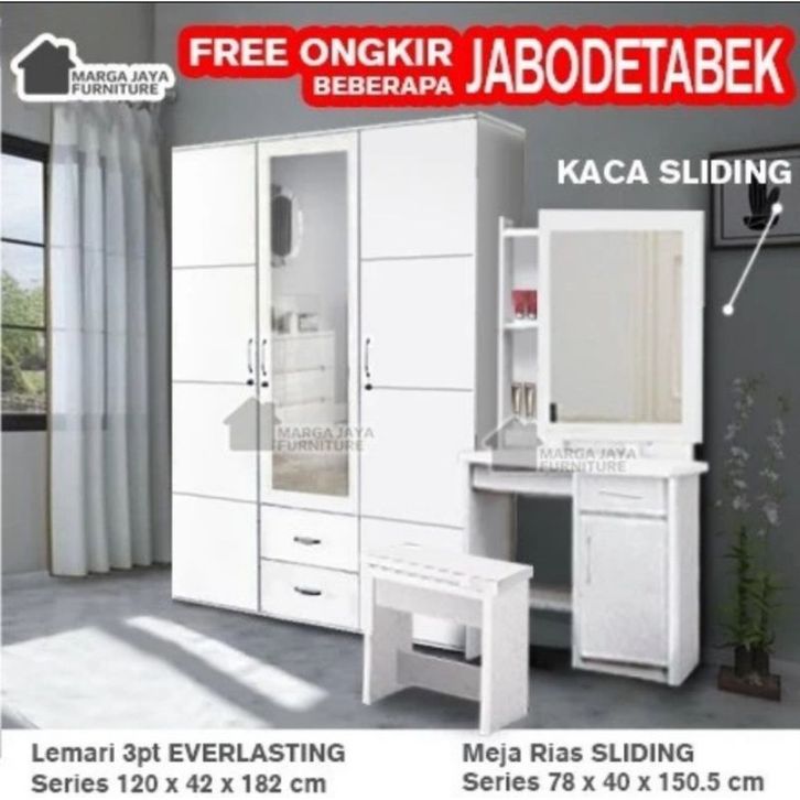 TERLARIS Set Lemari Pakaian 3 Pintu + Meja Rias Minimalis Cermin