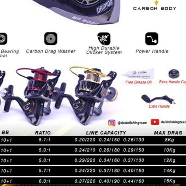 Reel daido daimos pro series power handel type BP bukan spin pilihan 1000 2000 3000 4000 6000