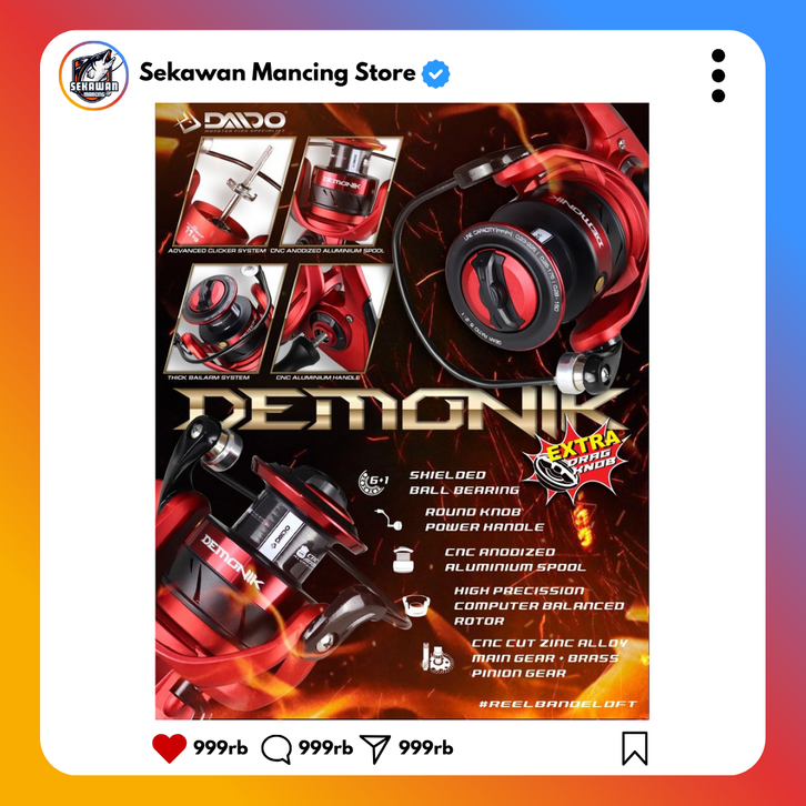 [Star] BARU REEL PANCING SPINNING DAIDO DEMONIK Waterproof Power Handle 7 Ball Bearing DAIDO FISHING TEAM