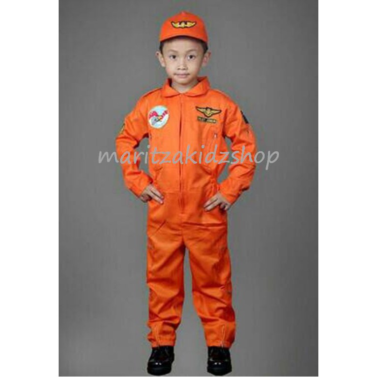 BAJU SETELAN KOSTUM PROFESI PILOT JUNIOR ORANGE