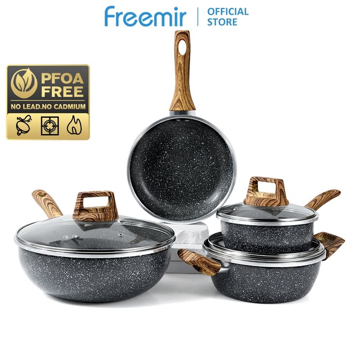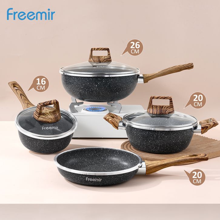 freemir Set 7 Pcs Wajan Panci 26/20/20/16 Cm Anti Lengket Marble Lapisan Granit Kombinasi Alat Masak Lengkap