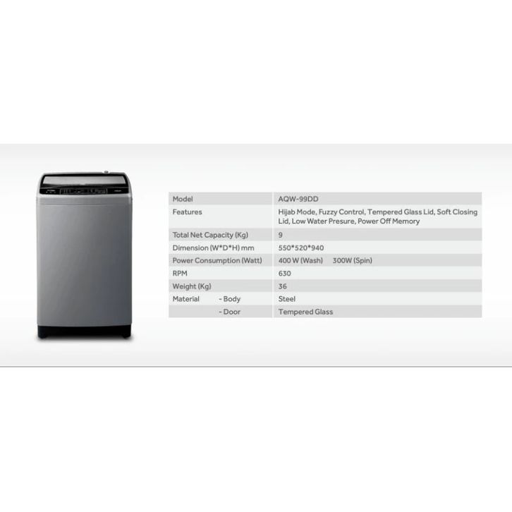 MESIN CUCI AQUA 9 KG TOP LOADING AQW-99DD GARANSI RESMI