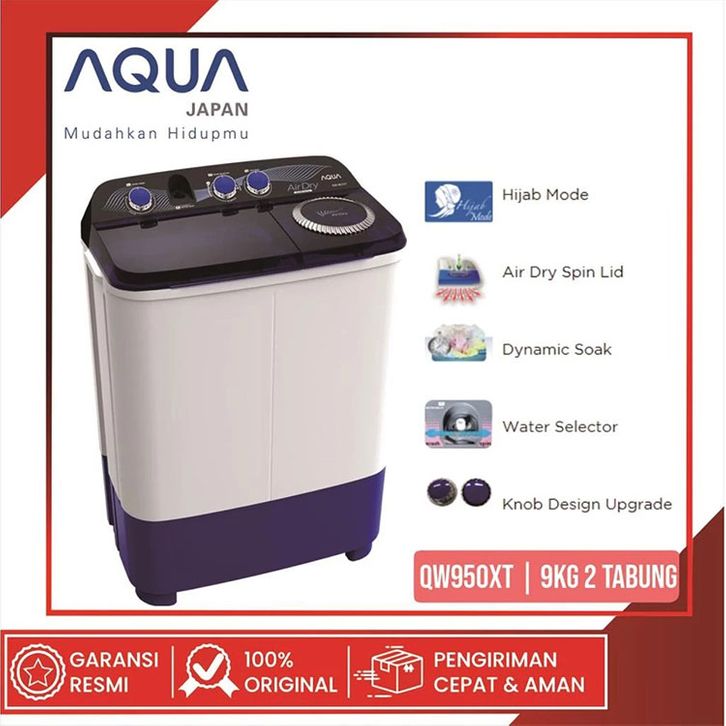 AQUA MESIN CUCI 2 TABUNG QW950XT 9 KG BERGARANSI - ORIGINAL OFFICIAL STORE