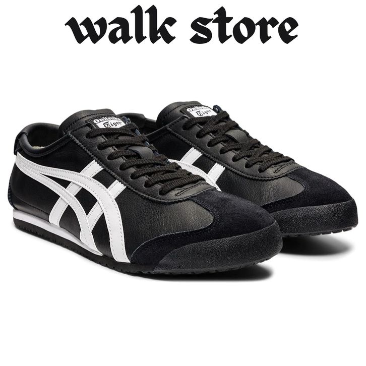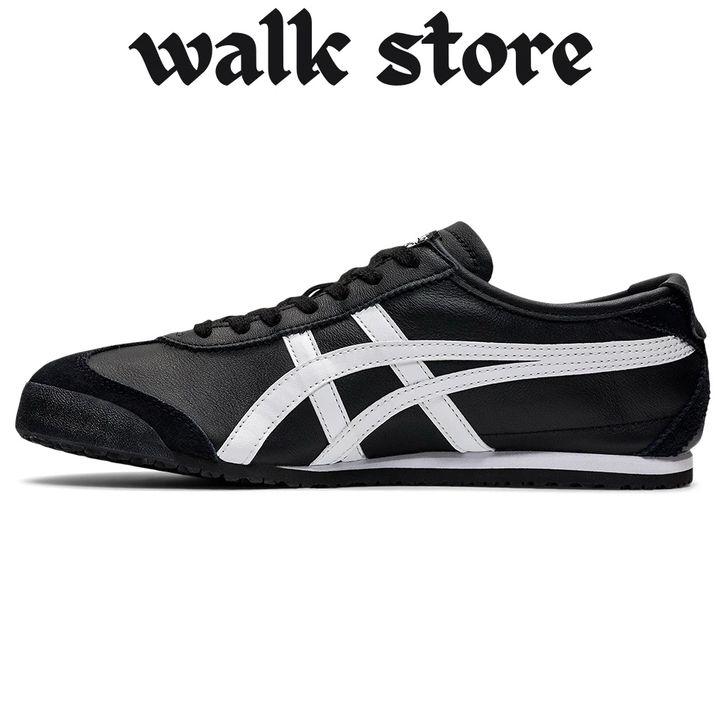Sepatu Onitsuka Tiger Mexico 66 Leather Black-White Sepatu Pria Wanita Sneakers Premium 100% BNIB Terlaris