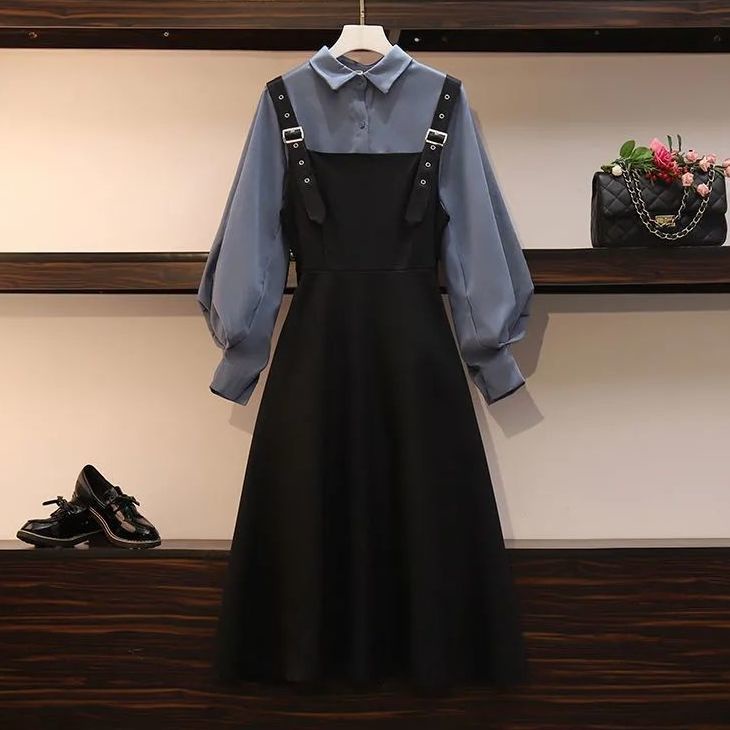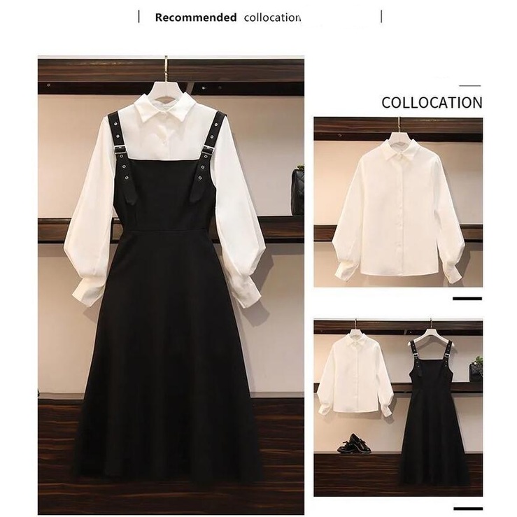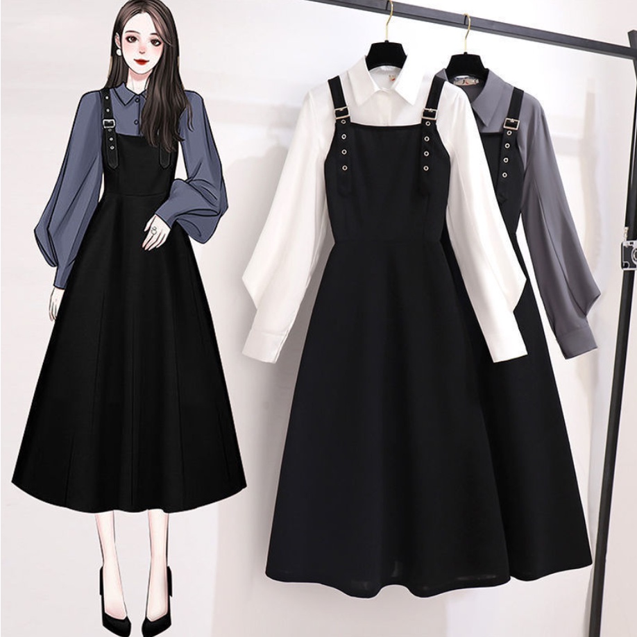 KEMEJA SETELAN GAYA KOREA + GAUN SETELAN DUA POTONG BUSANA RAMPING