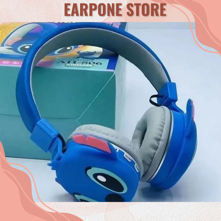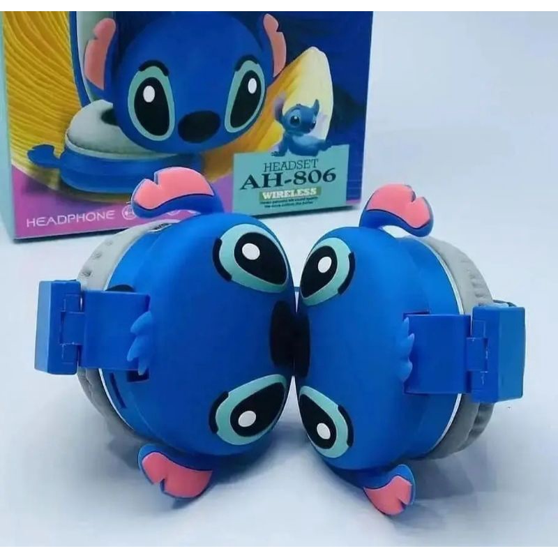 Headphone Bluetooth Karakter stitch Earphone Gaming Murah Headset Bando Anak Perempuan Laki Laki Bass